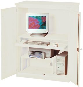 This cabinet allows you to hide your computer and peripherals behind locking doors. It includes a full width keyboard tray and a movable printer stand. Wiring access is provided through the back.Read More