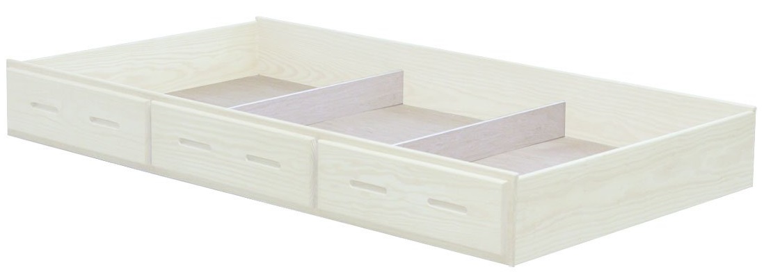 The trundle drawer rolls out easily on 4 casters. You can use it under any CD bed for convenient storage or as an extra bed. 2 dividers can be easily removed to accommodate a mattress. Maximum mattress size is 38" wide x 8" high x 73" long (78" long in the extra-long model). Premier, Trundle and HealthCare mattresses will fit.