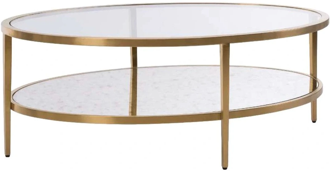 This coffee table features a stunning blend of sleek brass metal and clear glass, creating a modern and sophisticated look. Its clean lines and minimalist design make it a versatile addition to any living space. Perfect for elevating your décor with a touch of elegance and contemporary charm.Read More