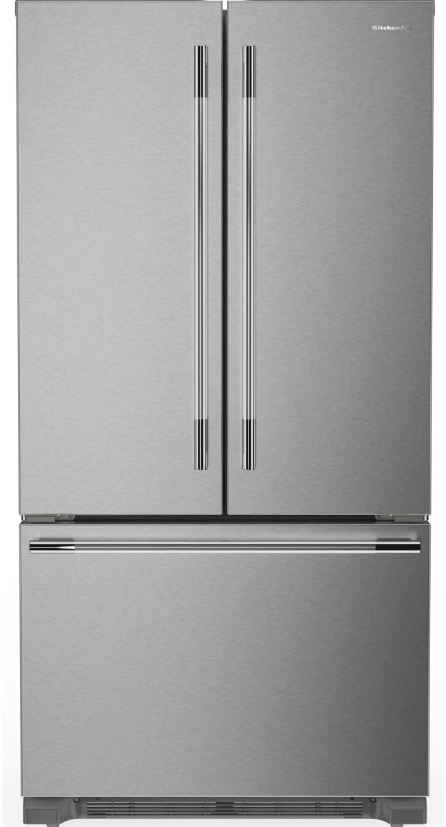 Enjoy freshness within reach. This KitchenAid® counter-depth French door refrigerator features an internal water dispenser to keep the outside looking sleek. The Preserva® food care system helps keep ingredients fresh and flavorful throughout, and you can control the temp with the FreshChill™ full-width pantry. You get to control humidity in the crisper drawers with the FreshSeal™ gaskets. Plus, the counter-depth design gives you a seamless look with the cabinetry.Read More