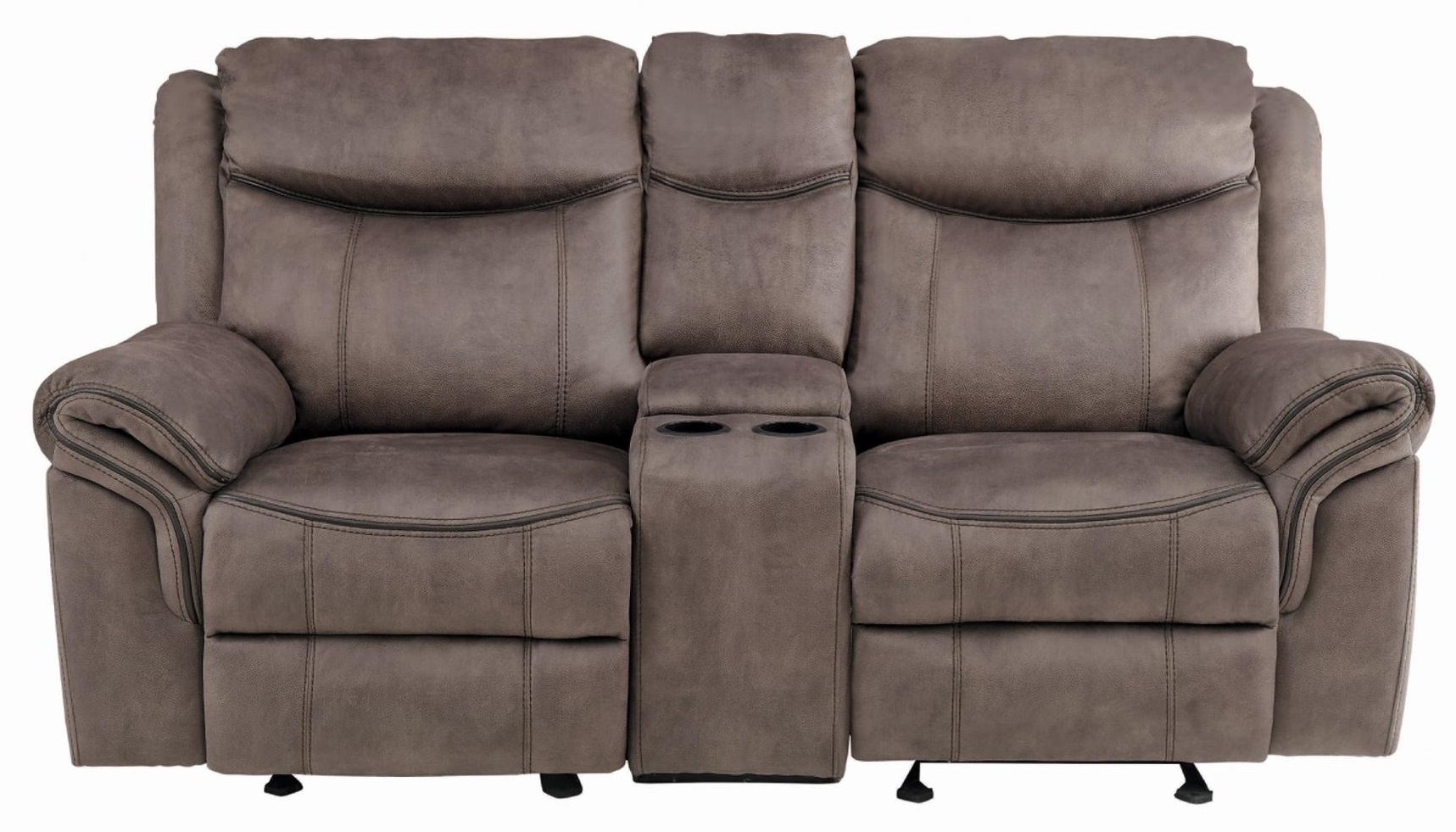 Dual glider reclining ends of the Loveseat flank a center mounted console.