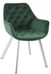 Effortless elegance with an opulent velvet finish gives the Ayami dining chair collection its signature style. Standing atop sturdy metal angled legs with a polished chrome finish, this dining arm chair's profile has a distinctive Mid-Century Modern flair that partners well with its lush green velvet upholstery for a look that epitomizes retro luxury.Read More