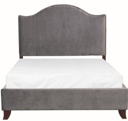The profile of the camelback headboard is accented with nail head furthering the traditional look. Gray velvet fabric covers the full bed for an elegant touch to your bedroom's decor.Read More