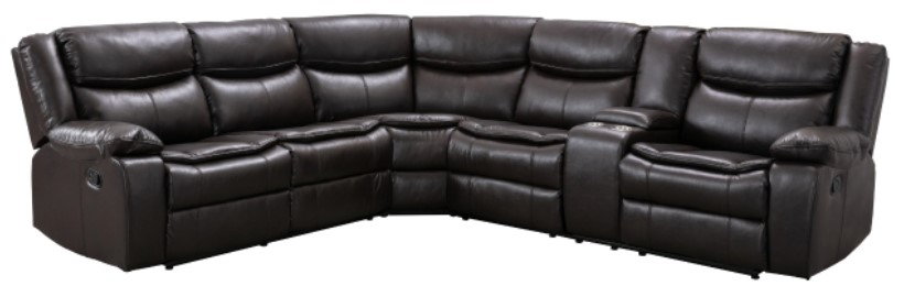 Plump pillowy armrests coordinate with the generously stuffed headrest and seat cushions to bring you all around padded comfort. The righthand loveseat's central console provides you with convenient storage for your devices as well as cupholders. And most importantly, double tab-pull latch mechanisms at either end take you from seated to reclined with enviable ease, making the Darnell sectional the perfect embodiment of well-turned leisure. Also available in reverse configuration with console loveseat on lefthand side.