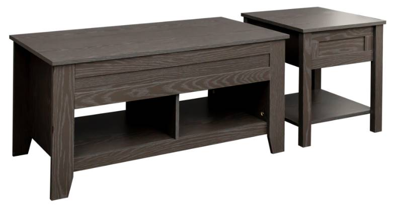Entertaining guests is a breeze thanks to the coffee table’s lift top, which not only elevates your snacks and drinks to a more accessible height but also provides covert storage. Additional storage is available in the open lower shelving and within the end table’s drawer. Attractively furnished with a grey faux wood finish and subtle moulding details, the Irmias has character with the distinctive appearance of wood graining but has a laminated surface that is easier to care for than genuine wood. In short, this set has everything your contemporary living room needs!