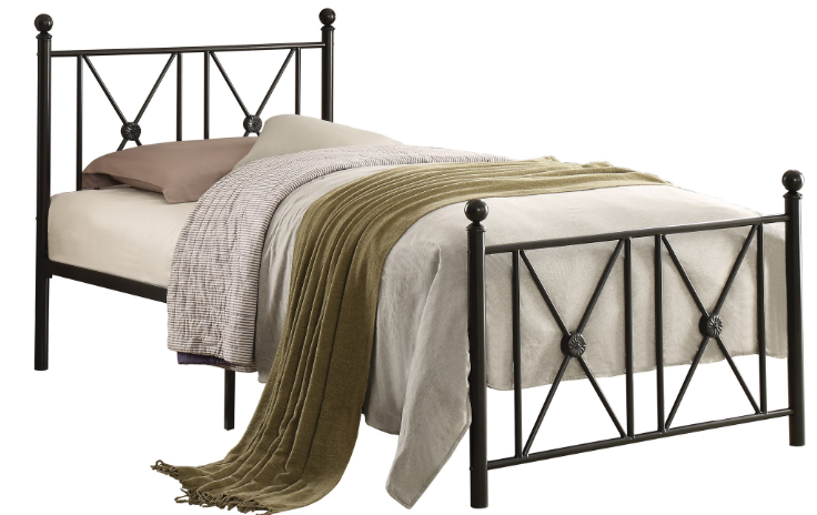 black metal bed features X-panels accent
