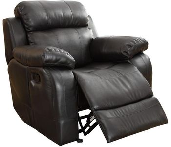 With either the extended stretch of the reclining sofa or soothing rock of the reclining chair, your comfort is taken care of in the Marille Collection. Drop down cup holders add additional function to the collection. The collection is offered in dark brown or black bonded leather match.Read More
