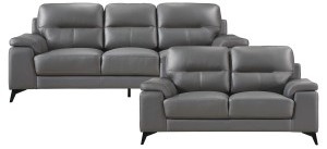 The optional silver or dark gray top grain leather cover, with faux leather, enhances the sleek profile of the collection. Contoured pillow-top arms and black metal legs further enhance the modern stance.Read More