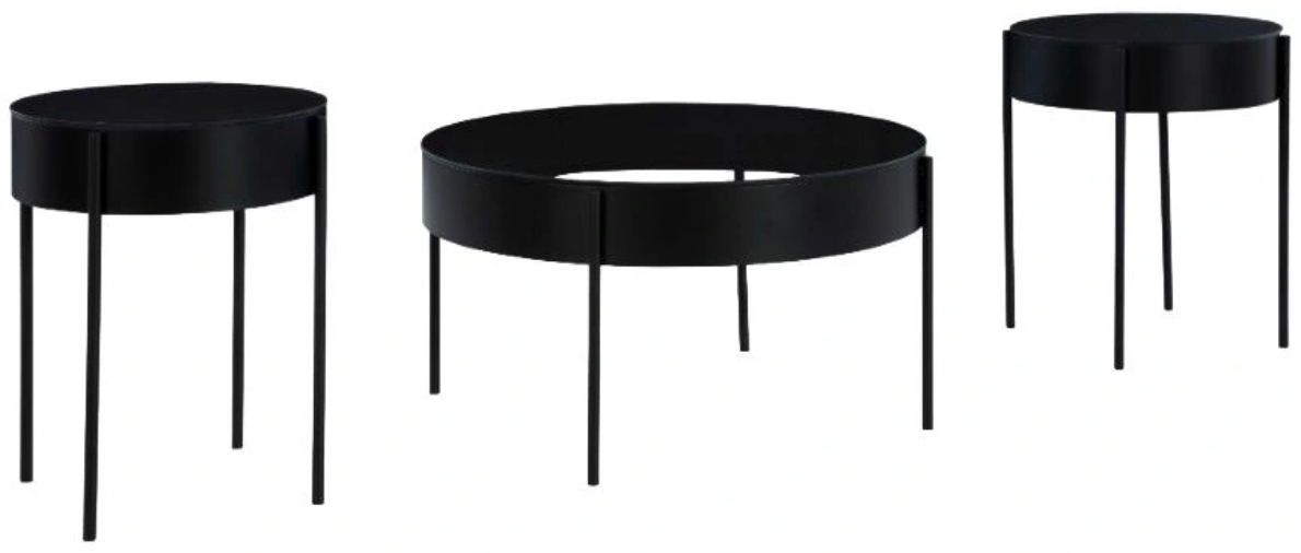 This accent table set combines metal and glass for a stylish and functional addition to your home. The tubular legs provide a sturdy base, while the matte black metal apron adds a touch of dramatic elegance. A black tempered glass tabletop offers both durability and a sleek aesthetic.Read More