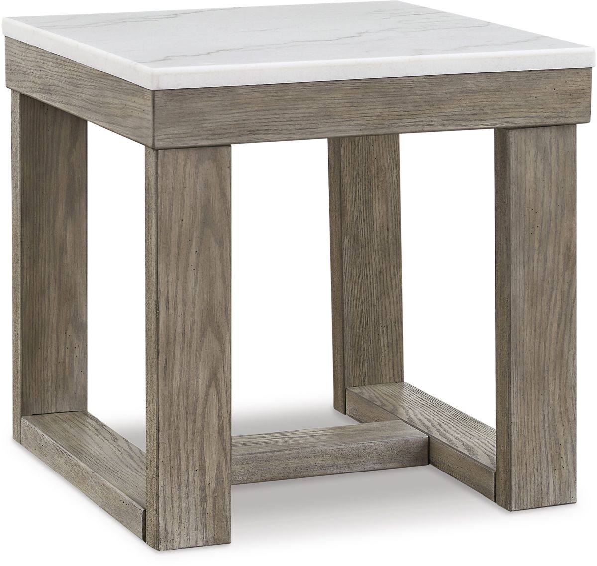 Casual lifestyle design. Made with Ash veneer and MDF substrate with natural marble tops. Finished with a trend-right grayish brown wood-tone. The oversized cocktail table with its stylish yet simple design is ideal for large sectional family room settings. Matching end table.Read More